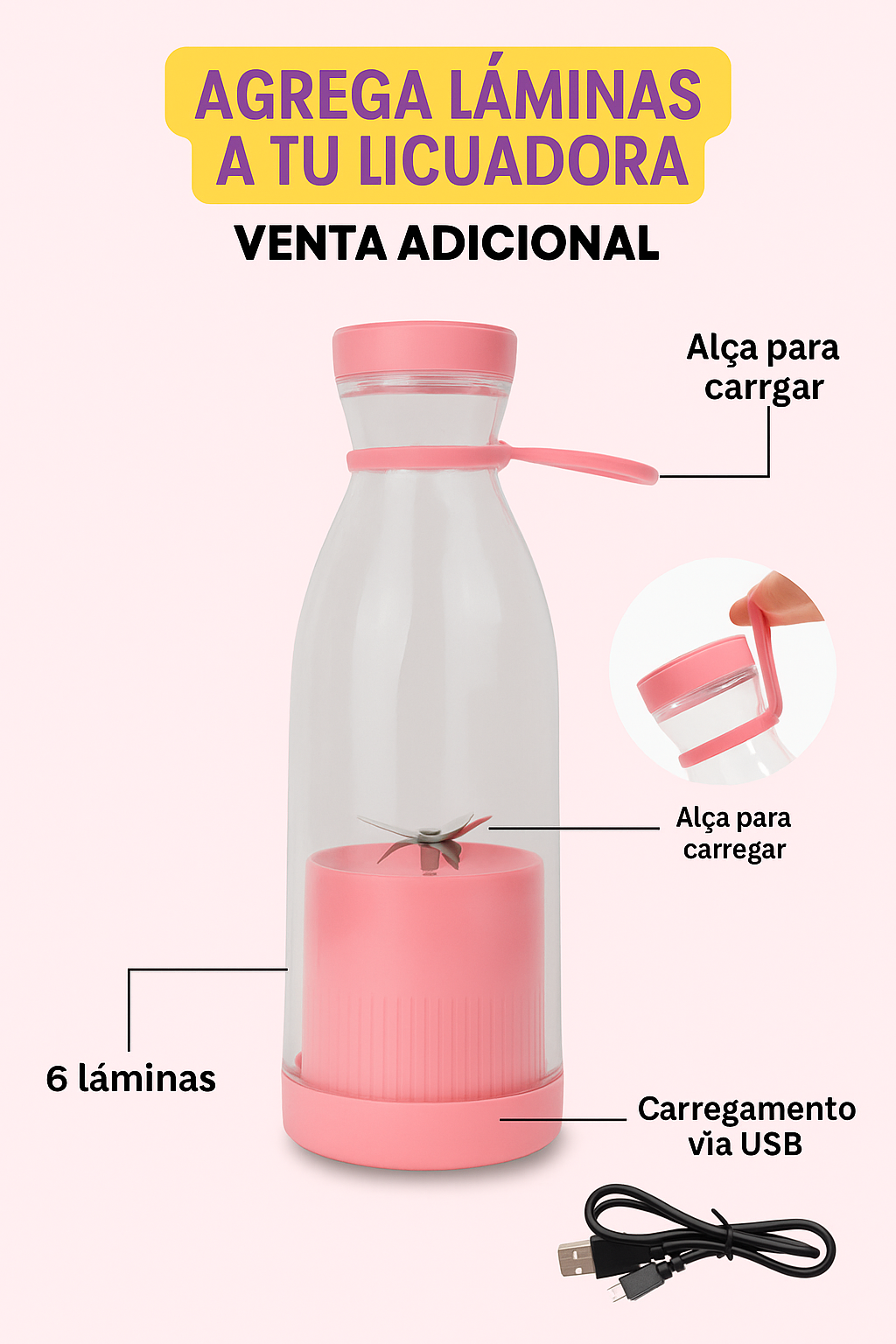 La Licuadora Portátil para Frutas es el complemento perfecto para un estilo de vida saludable y activo. Con su diseño compacto y recargable, puedes preparar jugos y batidos frescos en cualquier momento, sin necesidad de una cocina.
